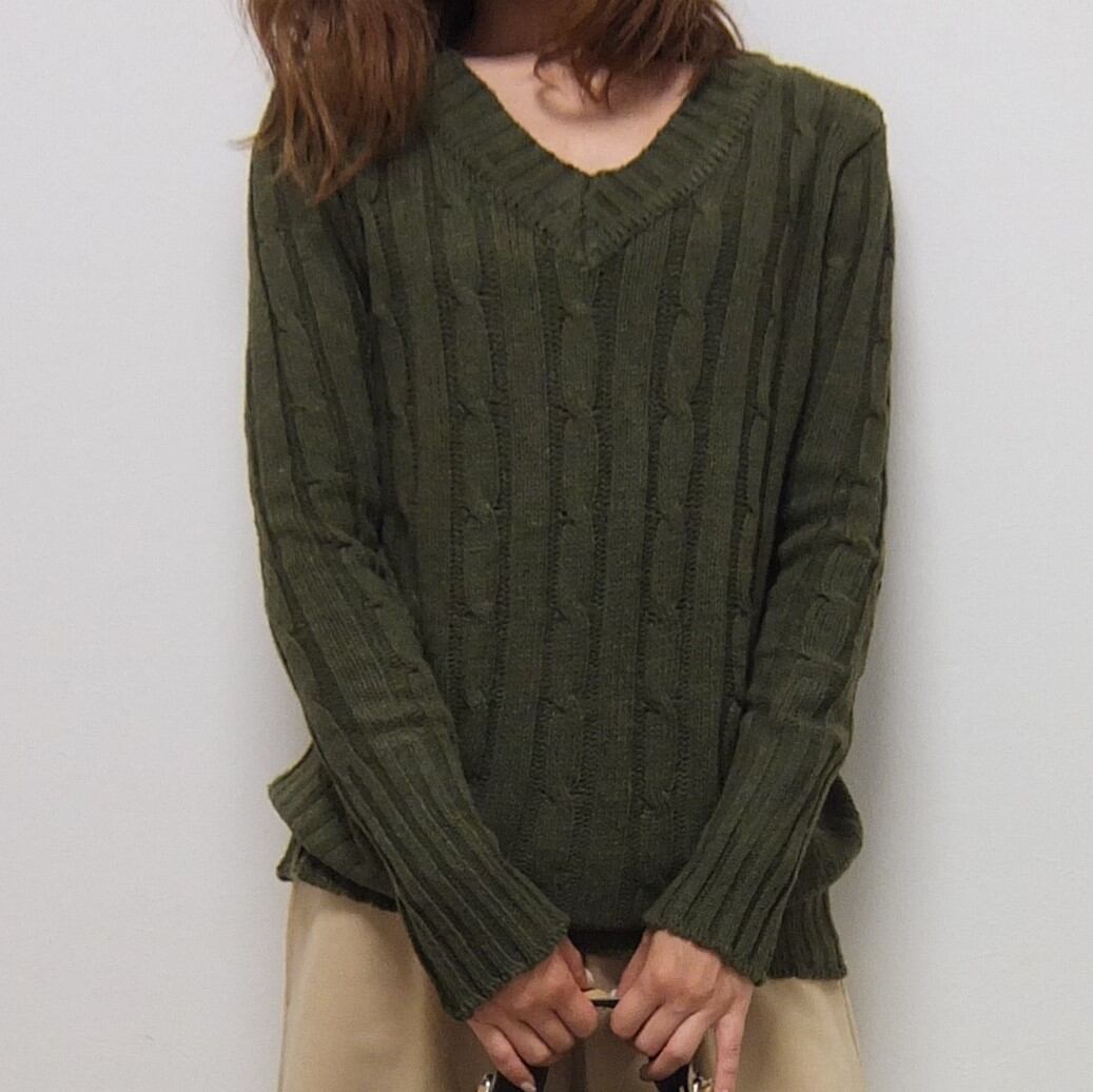 手編み風Vネックセーター